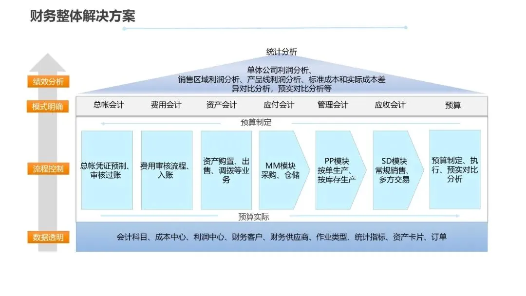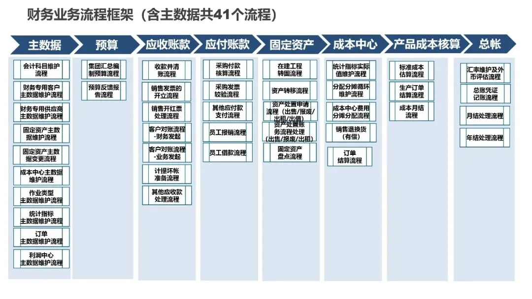 财务与成本管理模块的41个流程实现了真正的业财一体化。通过统一科目体系、成本中心管理、作业类型设置,建立了标准成本核算体系。