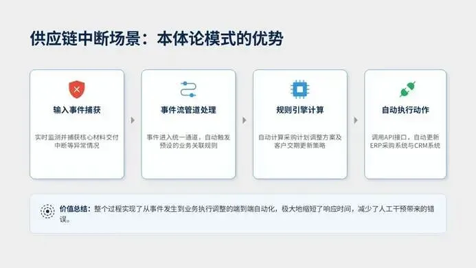 它更固化“规则”:将企业的业务知识和决策逻辑,转化为机器可以理解和执行的规则。比如“当库存低于安全水位时,自动触发采购申请”、“当核心供应商交付延迟时,自动启动备选方案”。