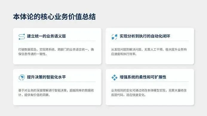 在数字化转型的深水区,企业的竞争早已不再是单一系统的竞争,而是整个体系效率和智能的竞争。本体论思想,正是帮助我们构建这种智能体系的关键钥匙。
