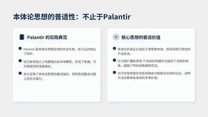 但我们更应该看到,本体论的价值,在于其思想本身,而不仅仅是某个产品。它为我们提供了一个全新的视角,去重新审视和构建我们的IT系统。
