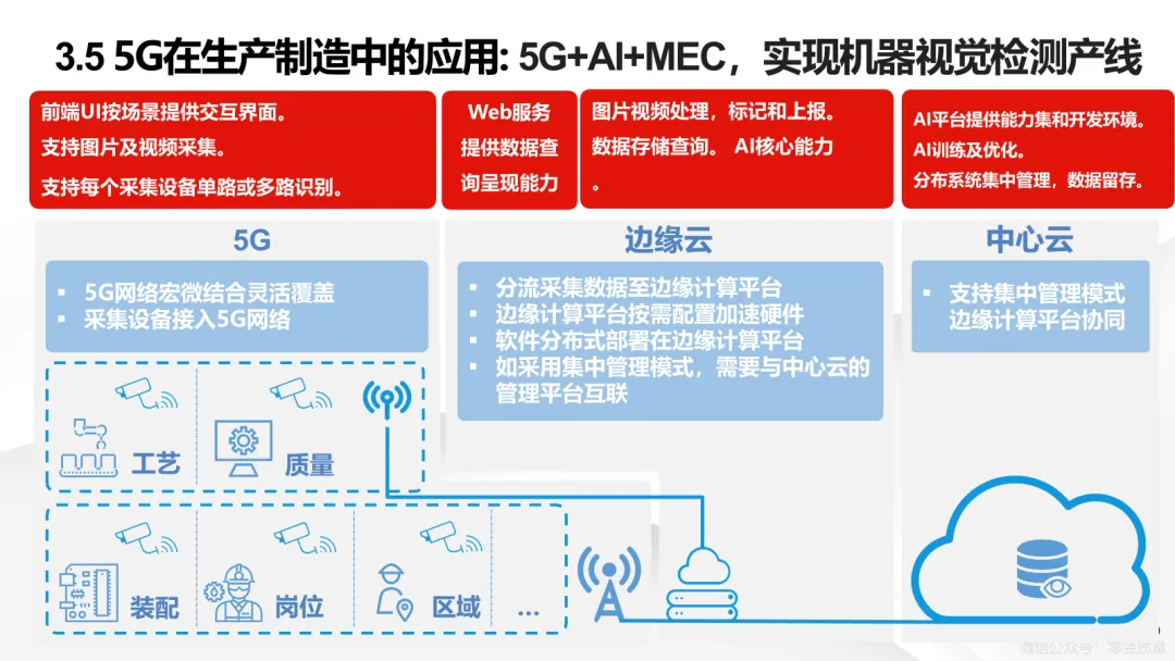涵盖产品质量管理、工艺优化、生产看板、工业 AR/VR 应用及 5G 技术落地等内容。通过 CQM 质量管理体系、智能缺陷检测系统保障产品质量;借助生产优化一体机实现石油石化等流程工业的参数调优;以实时生产看板实现设备、产能、物料等数据可视化;结合 AR/VR 与 5G 技术,赋能远程维保、辅助装配、智能巡检等场景,提升生产智能化水平。
