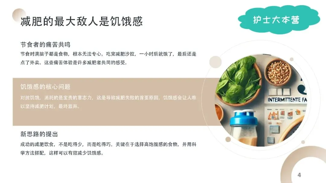 健康教育PPT(第30期):吃不饱的减肥餐:高饱腹感食物清单与“盘子分区法”