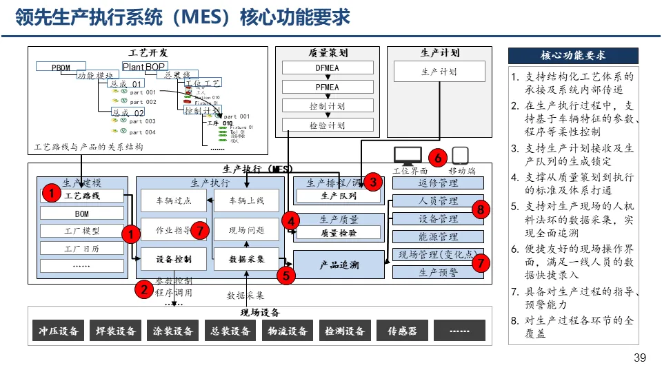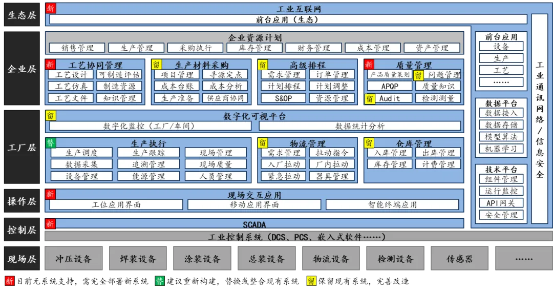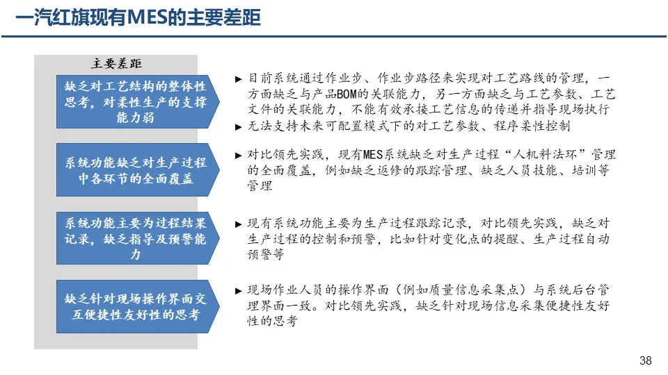 一汽的数字化工厂方案中,这种协同能力首先体现在系统架构的重构上。方案打破了现有系统“事后补录”的功能定位,基于大制造领域核心业务过程规划整体应用系统,明确各业务环节的系统边界及衔接关系,避免了“断点、孤岛”现象。比如在工艺环节,通过数字化工艺平台建设,实现冲、焊、涂、总装等全工艺环节的数字化承接与传递,让产品开发的工艺数据能直接流转到生产执行环节,无需人工二次录入,这一举措直接将产品开发生准周期从 23 个月缩短至 16 个月,大幅提升了新品上市效率。