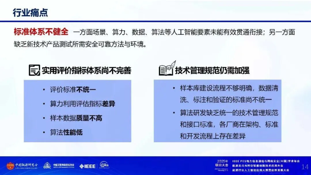 当前,“人工智能+能源”仍面临诸多挑战。技术底座方面,算力不足、数据零散、平台割裂等问题制约创新;场景推广中,多数应用仍处试点阶段,老旧设备改造难度大,AI驱动的规模化价值闭环尚未形成;业务融合上,人工智能与业务系统的深度嵌入不足,规模效应与基层获得感有待提升;标准体系层面,场景、数据、算法等要素衔接不畅,测试方法与评价指标亟待统一。