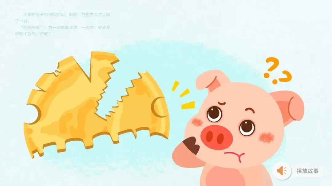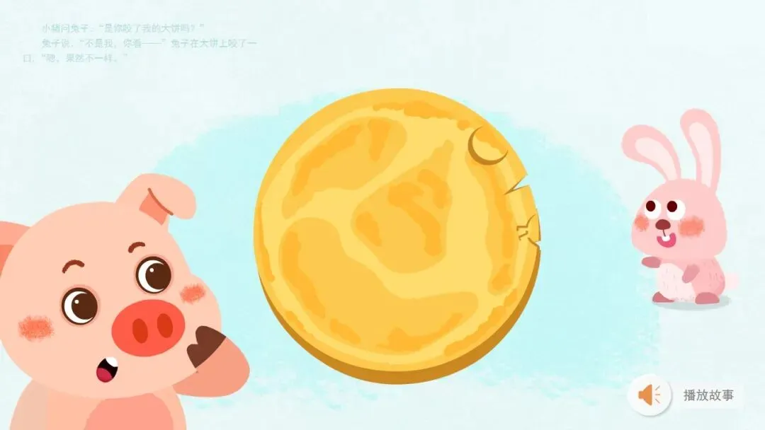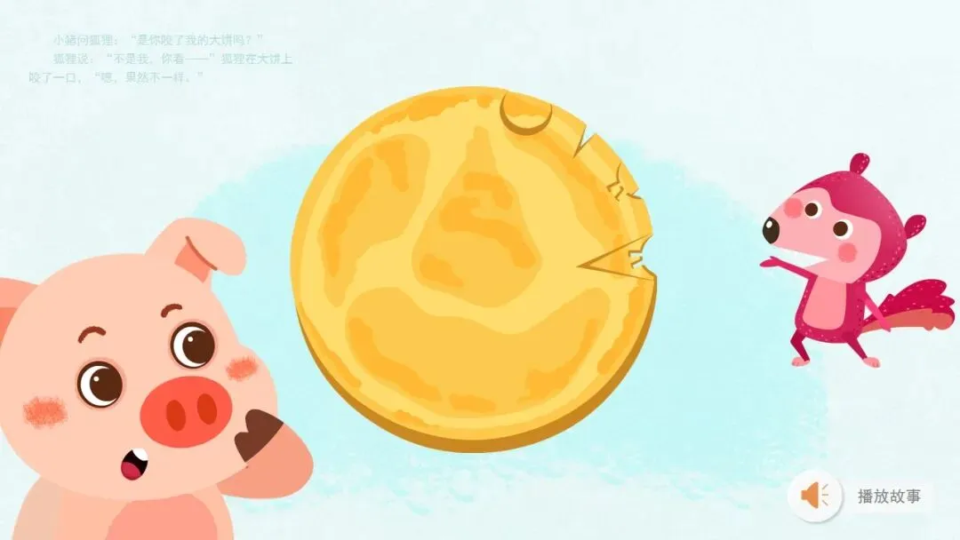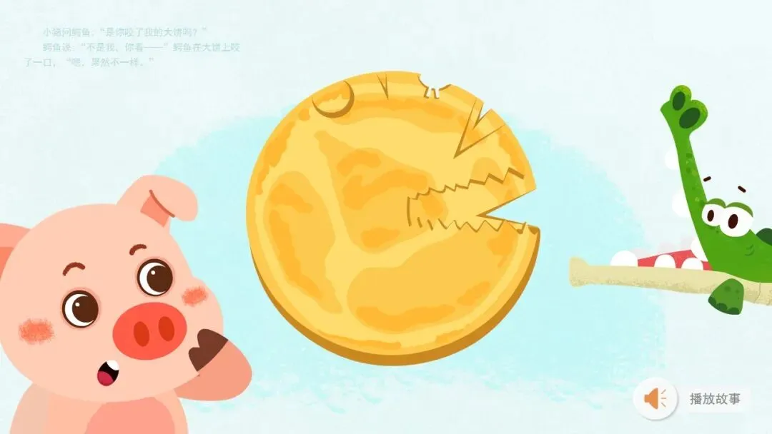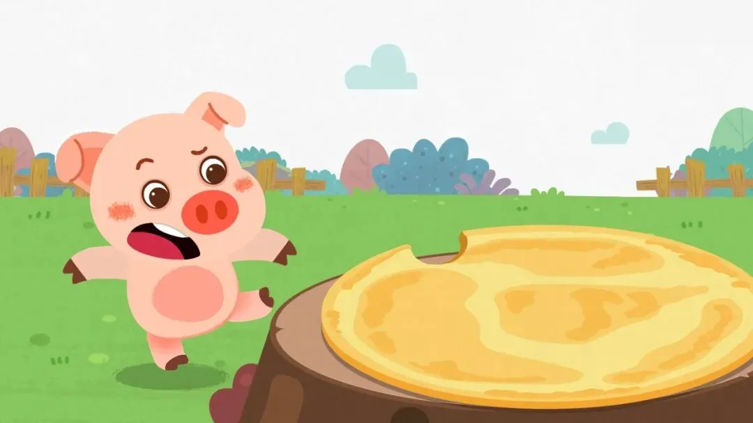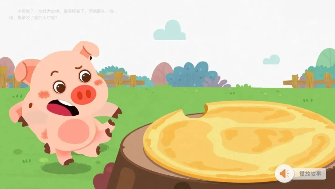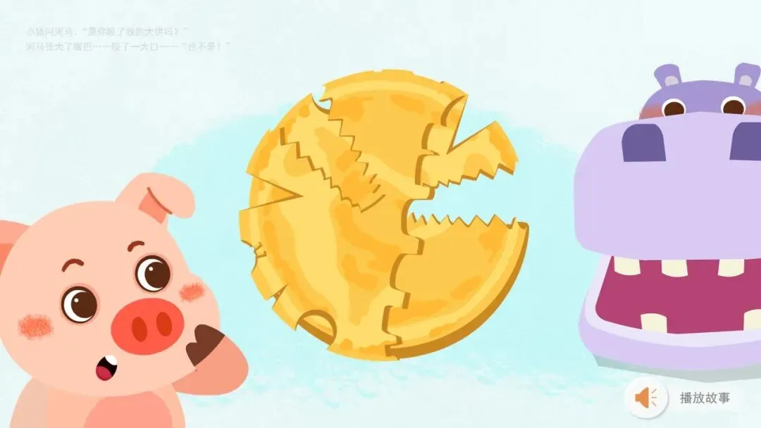 幼:小猪,它的大饼被咬了一口。