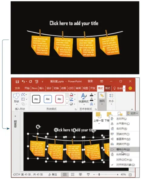 如下图所示,这种逻辑要增加或减少一个形状,都会打破平衡,这类图建议放弃修改。逻辑图的组成形状彼此间较为独立时,比较容易修改,如下面两张图所示,要想将4个组成形状变成5个,只需要复制一个形状,再利好形状【排列】功能,即可实现数量上的修改。2.改变颜色