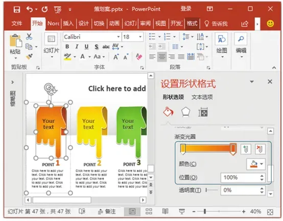 在修改图形颜色前,应该打开图形的【设置形状格式】窗格,看看这种形状的颜色填充方式是什么。