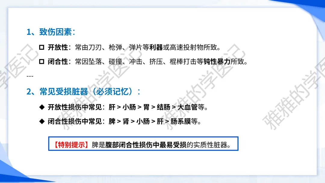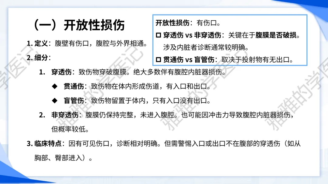 内容说明:腹部损伤,制作完成,目前正在公众号更新,需要笔记版请联系雅雅(免费)。