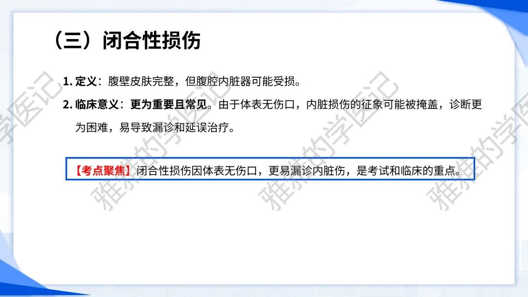 本次内容为外科学(第10版),第7篇-腹部外科疾病,第2章-腹部损伤,第1节-概述。