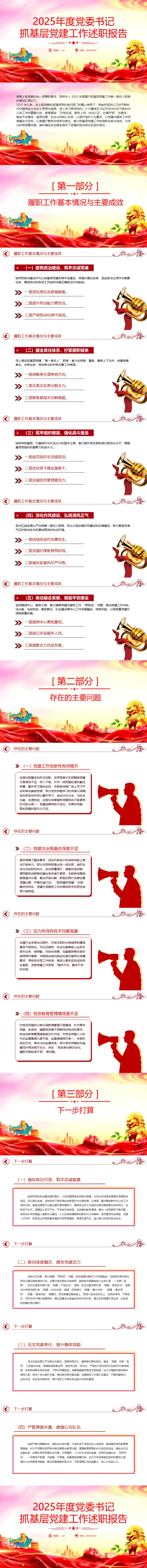 >PPT+讲稿:2025年度党委书记抓基层党建工作述职报告
