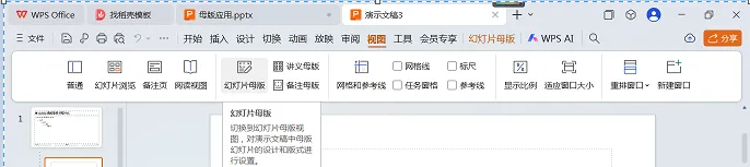 1.视图-幻灯片母版,默认的幻灯片母版及版式。