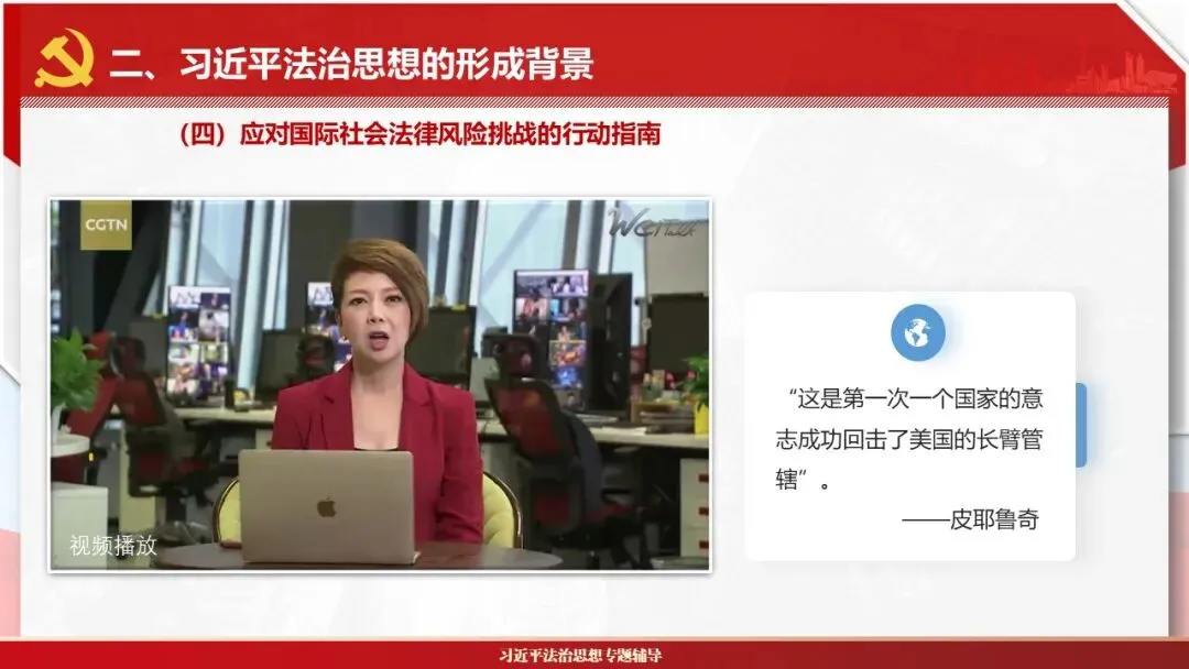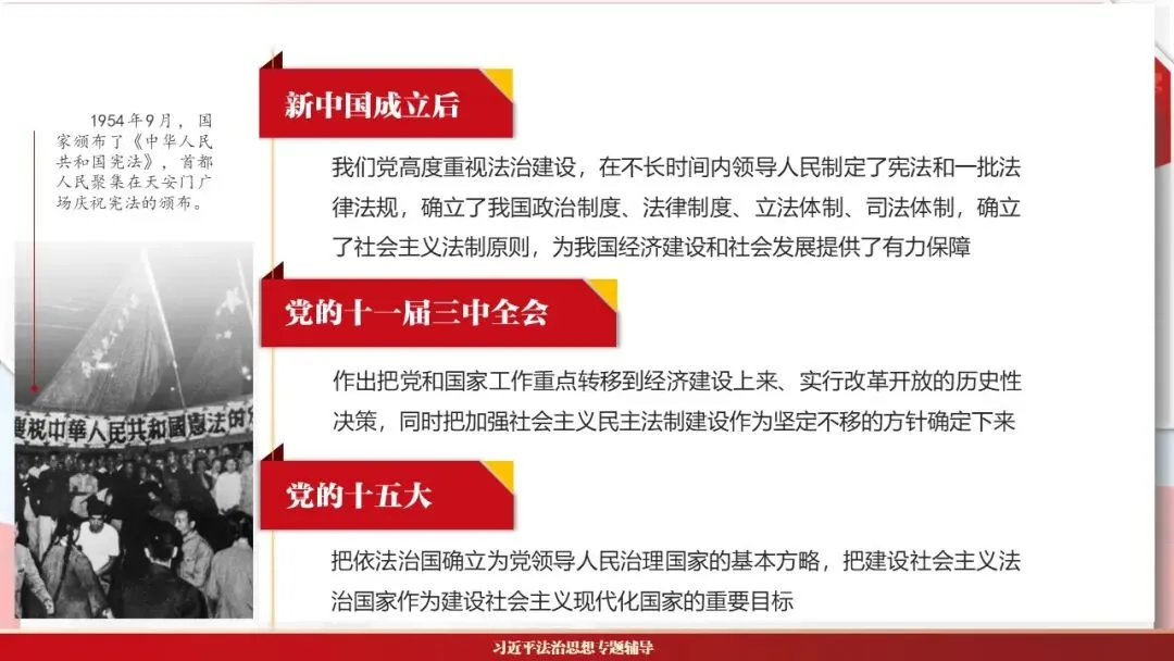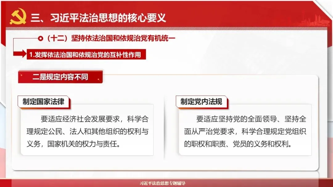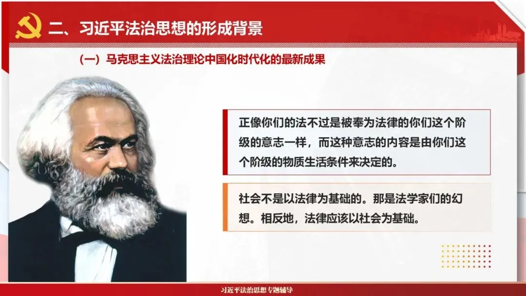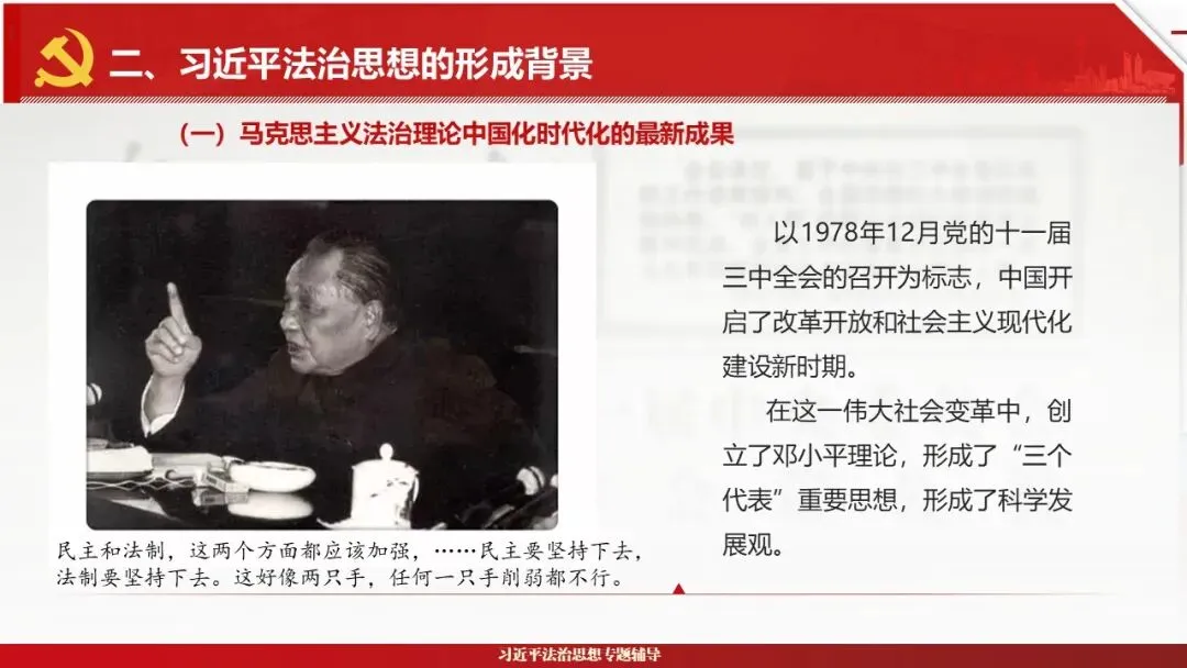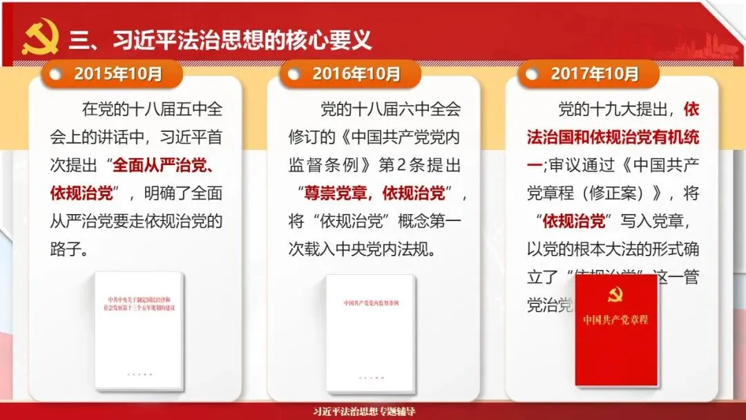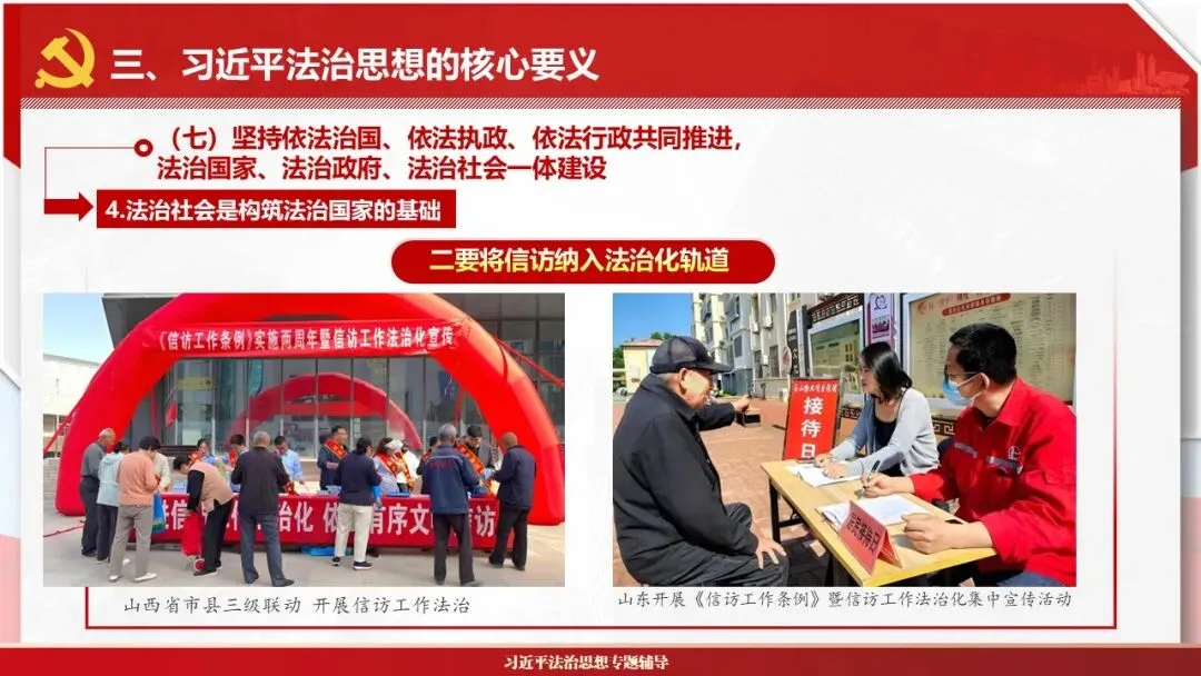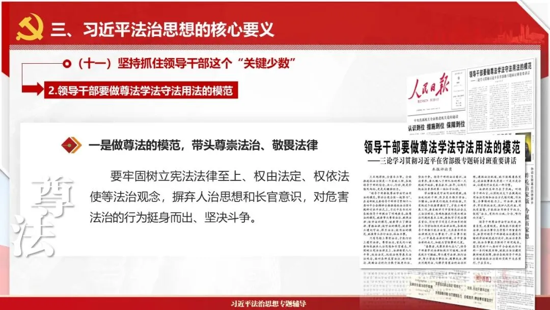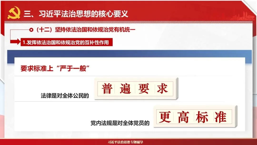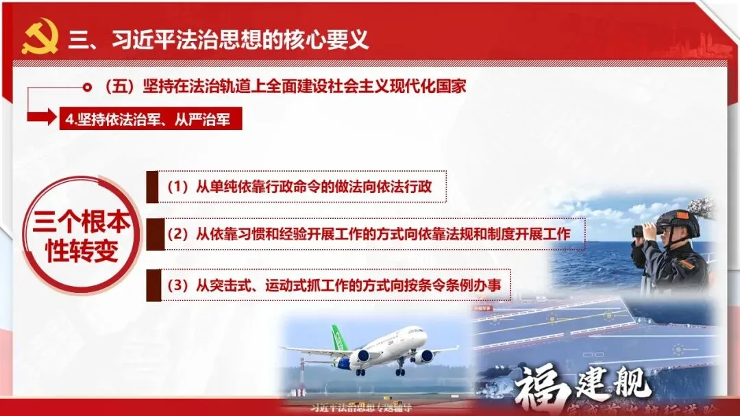 2026课程体系和教学大纲系列:法治思想辅导PPT,讲稿核心要义聚焦纲要“12个坚持”,融入新旧解读,引申成就、背景、实践,大量正反案例,充分增强讲稿生动性,已多次核实修正,确保权威引用。PPT版面设计风格采用大量高清图片、视频,结合图表运用,清晰呈现要点【版权声明】本PPT版设及讲稿已申请知识版权登记,提醒警示!交流认准标注原创及时持续更新、放心使用,其他渠道获取无版权必追究!篇幅部分展示,更多思政课程教学大纲系列、思想、论述、能力、本领类以及条例规定等辅导课件,及时更新。