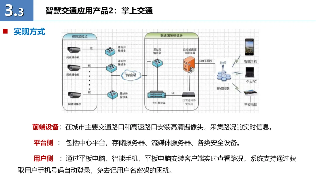 此外,方案还详细描述了各应用产品的实现方式、功能特点及商务模式,并通过成功案例展示了其实际应用效果。整体来看,本方案不仅提供了全面的智慧交通建设思路,还通过具体产品和案例展示了其实施路径和商业价值,为智慧交通的发展提供了有力支持。