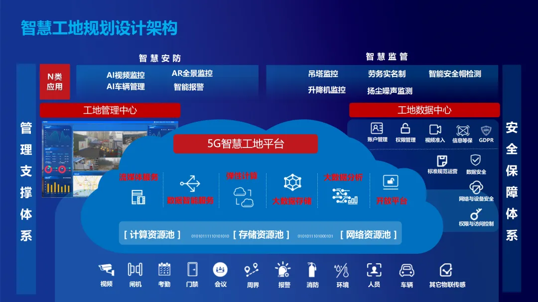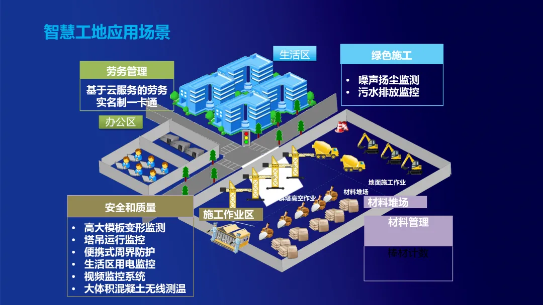 方案涵盖了劳务实名制管理、塔吊运行监控、扬尘噪声监测、全景监控、智能安全帽检测等多个应用场景,有效解决了劳务用工管理混乱、大型设备监管困难、材料清点手段落后、危险区域监控不足等难题。同时,利用5G技术的高速传输特性,实现了施工现场的实时数据采集与智能分析,提升了工地管理的效率和安全性。