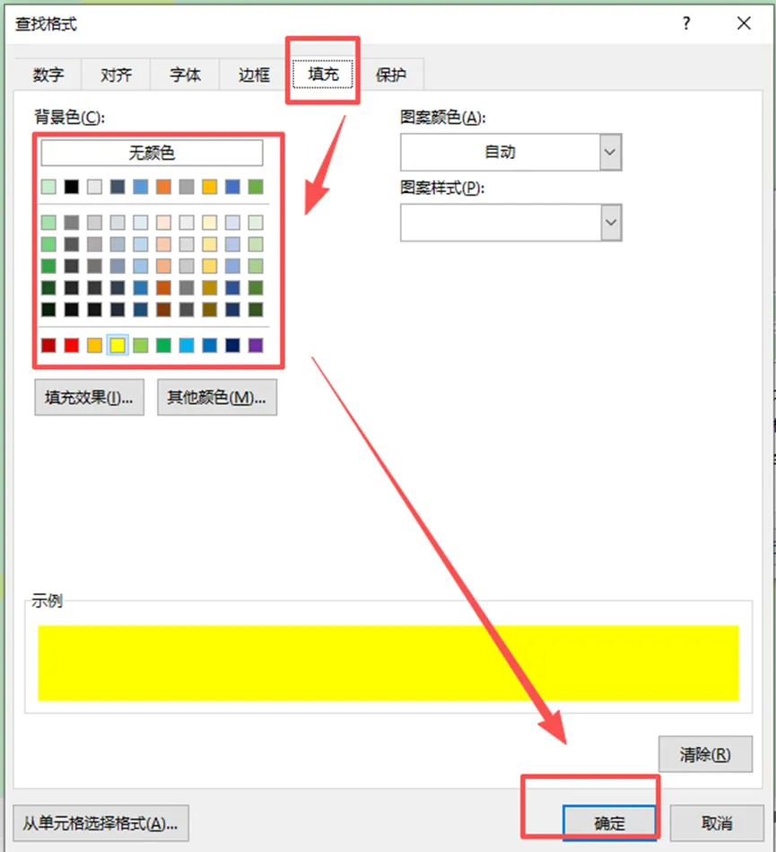 在弹出的窗口中选择「填充」,选中表格里的黄色底色