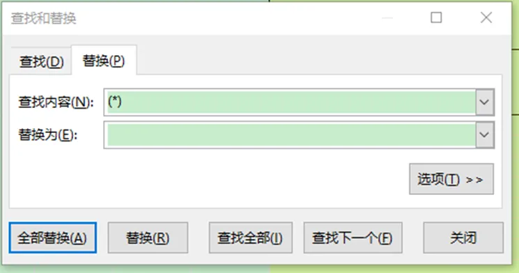 查找内容栏填写「(*)」(中文括号,* 代表括号内任意内容)