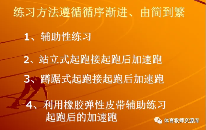 希望通过前面的几个练习方法能让同学们更好的学习快速跑中起跑后的加速跑技术。