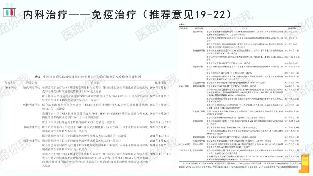 - PD-L1高表达(TPS≥50%或TC≥50%/IC≥10%):可考虑免疫单药治疗(如帕博利珠单抗、依沃西单抗、阿替利珠单抗)。