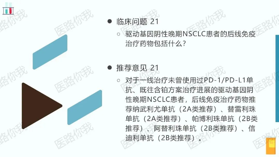 - 后线治疗:对于一线未使用过免疫治疗且含铂方案进展的患者,后线可考虑纳武利尤单抗、替雷利珠单抗等PD-1/PD-L1抑制剂。
