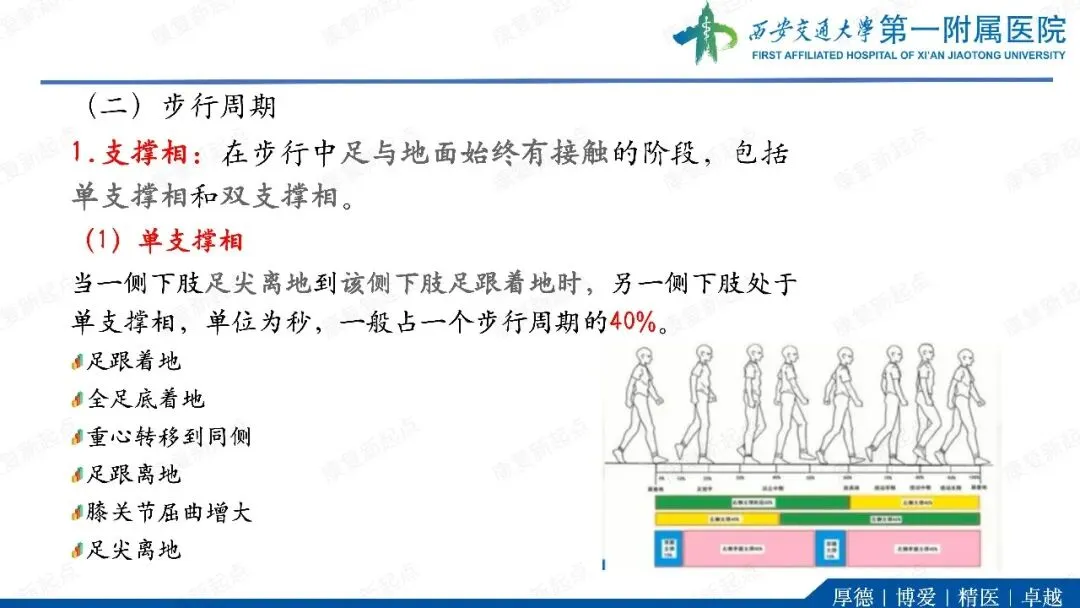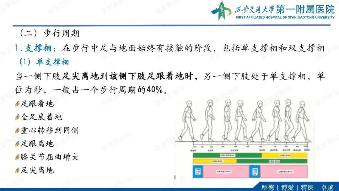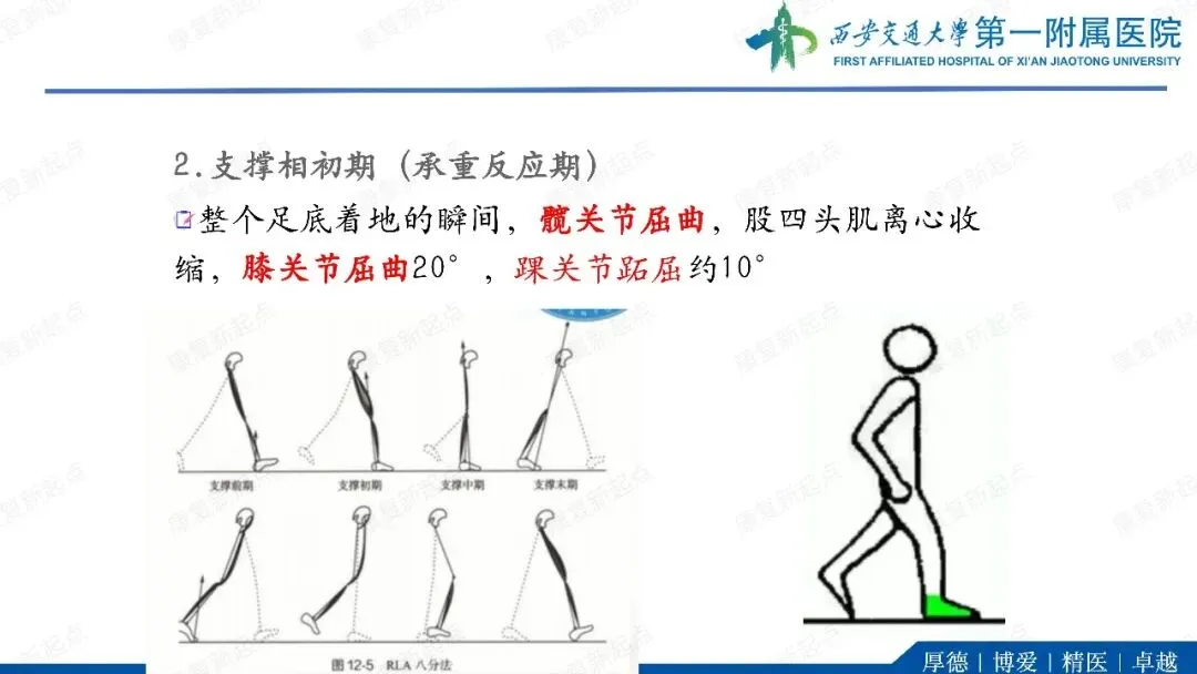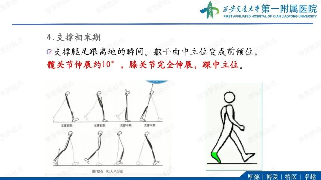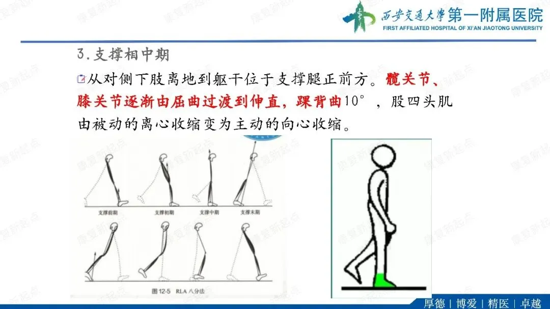 ·代偿反应。在单支撑期,躯干和骨盆向髋外展肌无力侧倾斜(B)