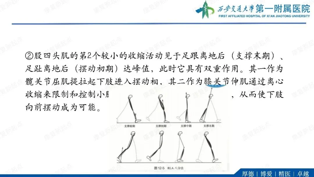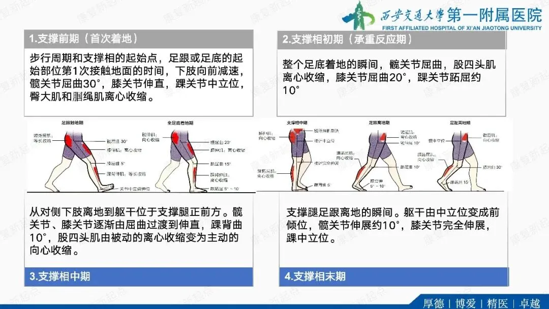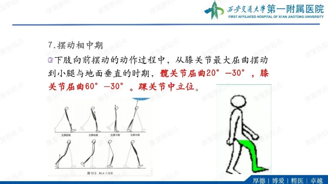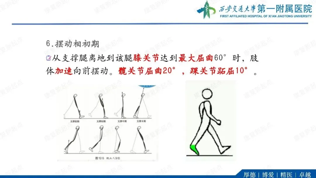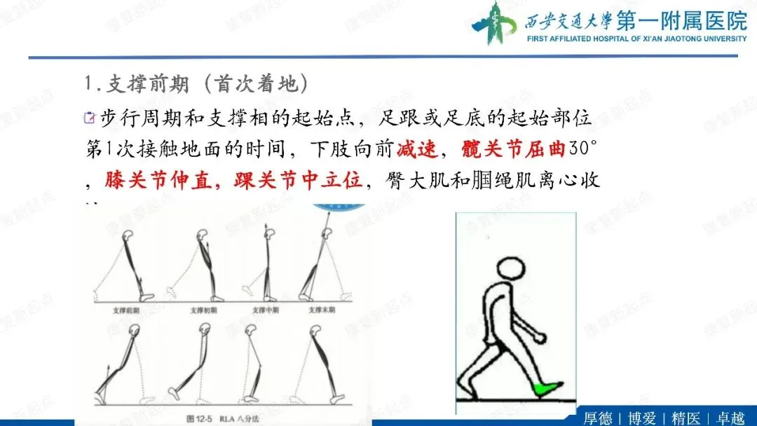 ·代偿反应。在单支撑期,躯干和骨盆向髋外展肌无力侧倾斜(B)