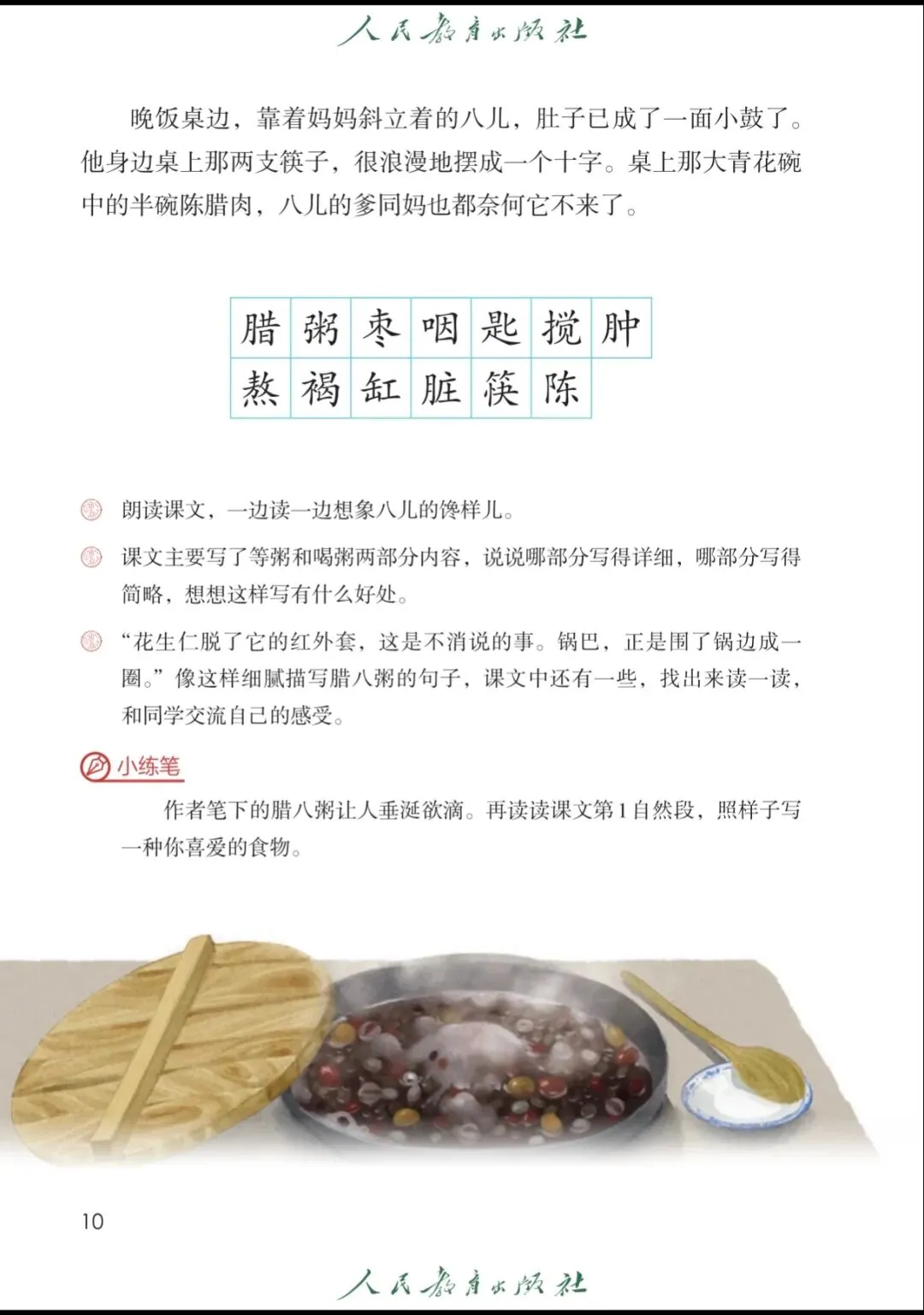 以部编版六年级下册第一单元第二课时《腊八粥》ppt封面设计为例