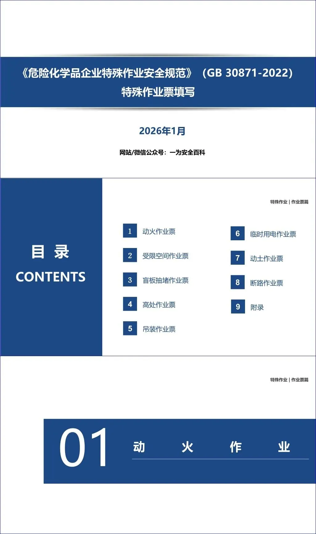 该文档是针对国家标准《危险化学品企业特殊作业安全规范》(GB 30871-2022)中特殊作业票填写要求的解读材料,共涵盖9类特殊作业的安全作业票填写要点与管理规范。全文结构清晰,按作业类型分章节说明,每章均包含定义、责任主体、作业分级、安全措施、审批流程、气体分析、监护要求等核心内容。