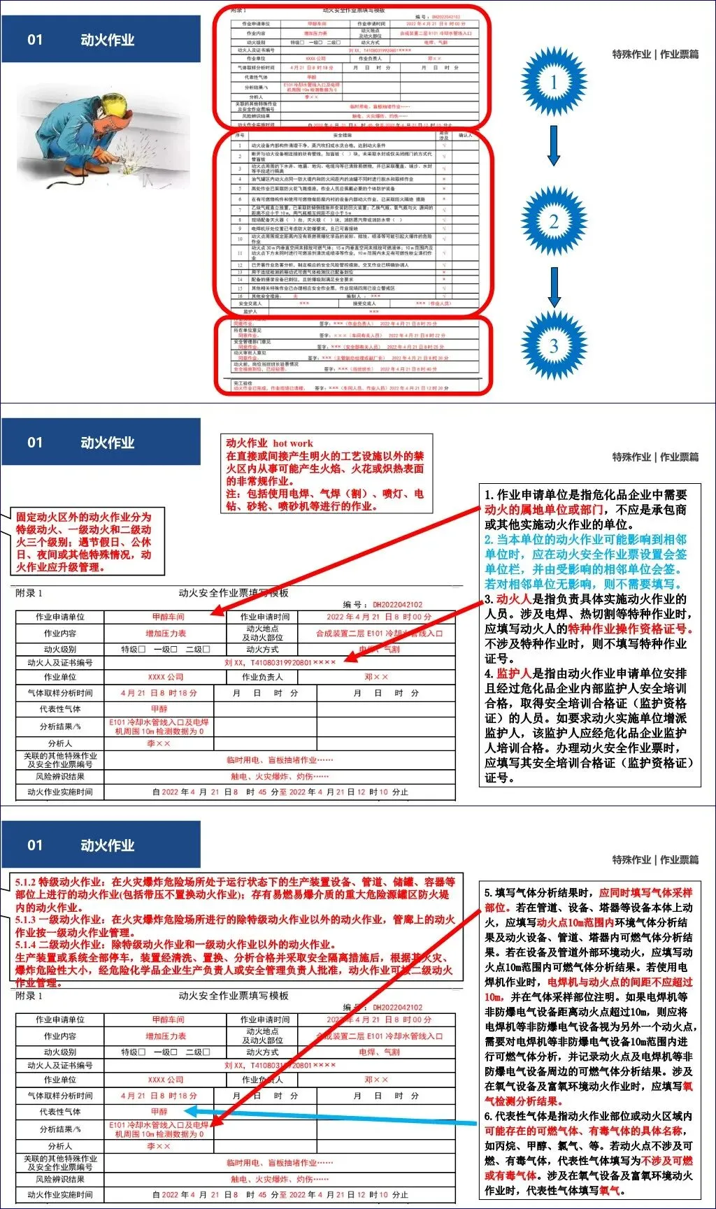 定义:在禁火区内进行可能产生明火、火花或炽热表面的非常规作业(如电焊、气割、砂轮等)。