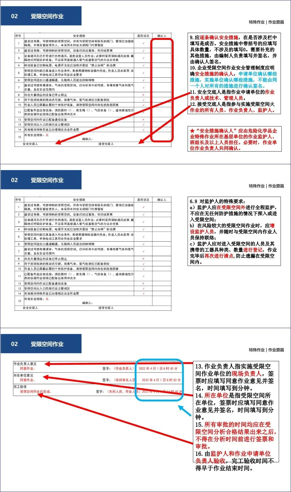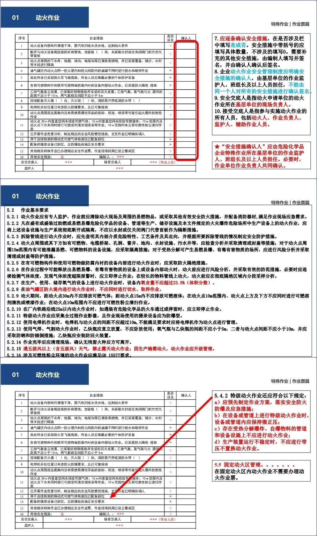 安全措施需逐项确认,不得一人签所有项;