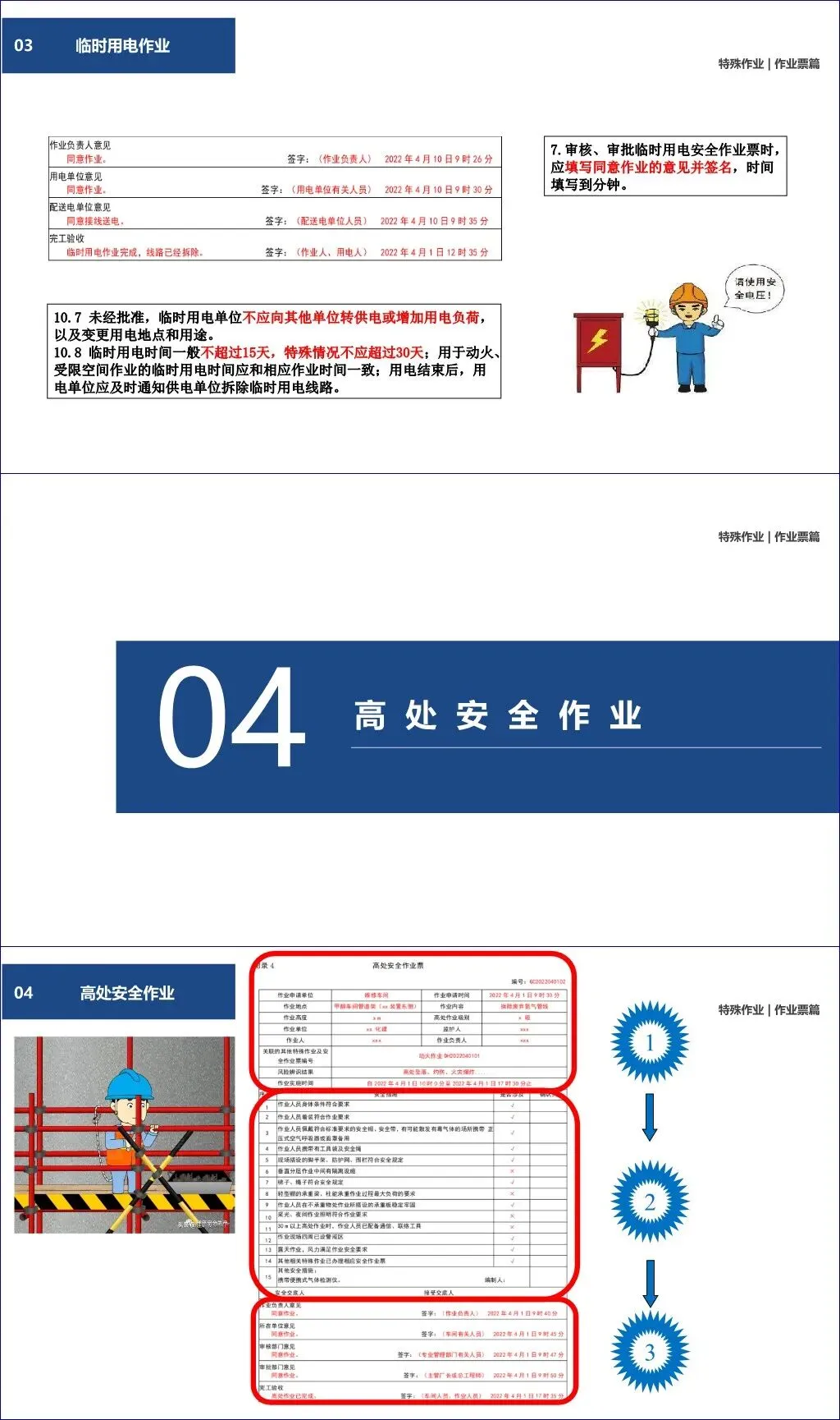 作业票一式三联,保存 ≥1年,影像记录 ≥1个月。