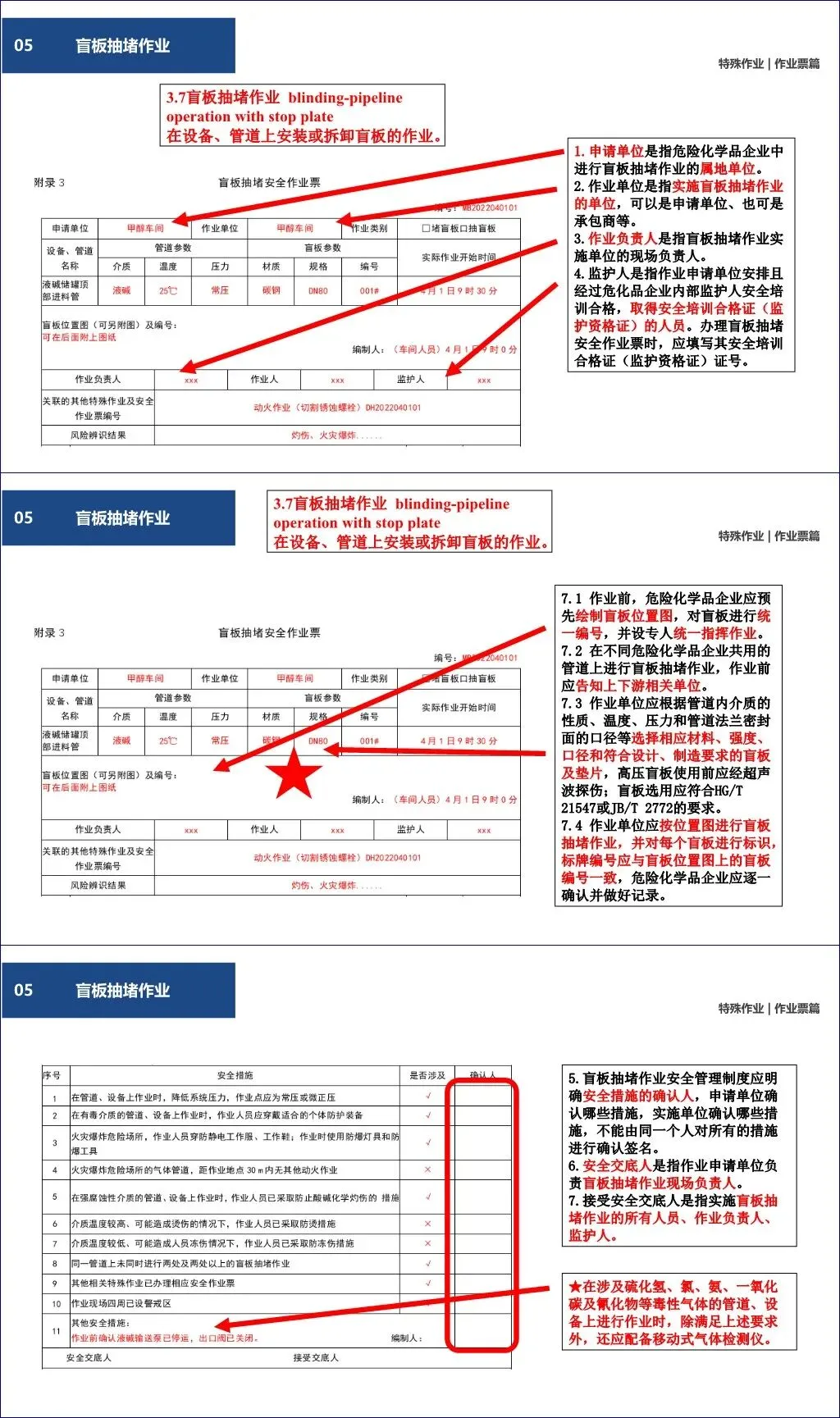 一张票仅限一块盲板的一次操作(抽与堵分别办票);