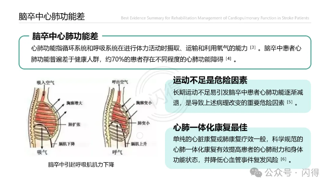 研究背景:脑卒中是我国成年人致死致残首要病因,约70%患者存在心肺功能障碍,科学的心肺一体化康复可提高耐力、降低复发风险,但临床缺乏统一指导方案。