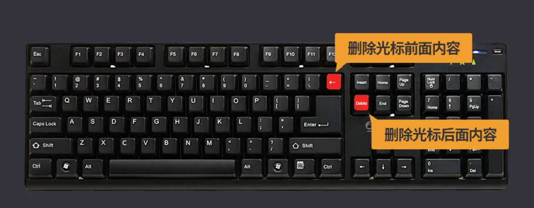 下面再做一下收尾工作,先清除图表冗余信息。之前我们已经掌握了Delete键的操作,但键盘中还有一个删除键,就是←Backspace,两者的区别是删除位置的不同,如下图。而我们后面的操作,这两个键你可以任意选择使用哦: