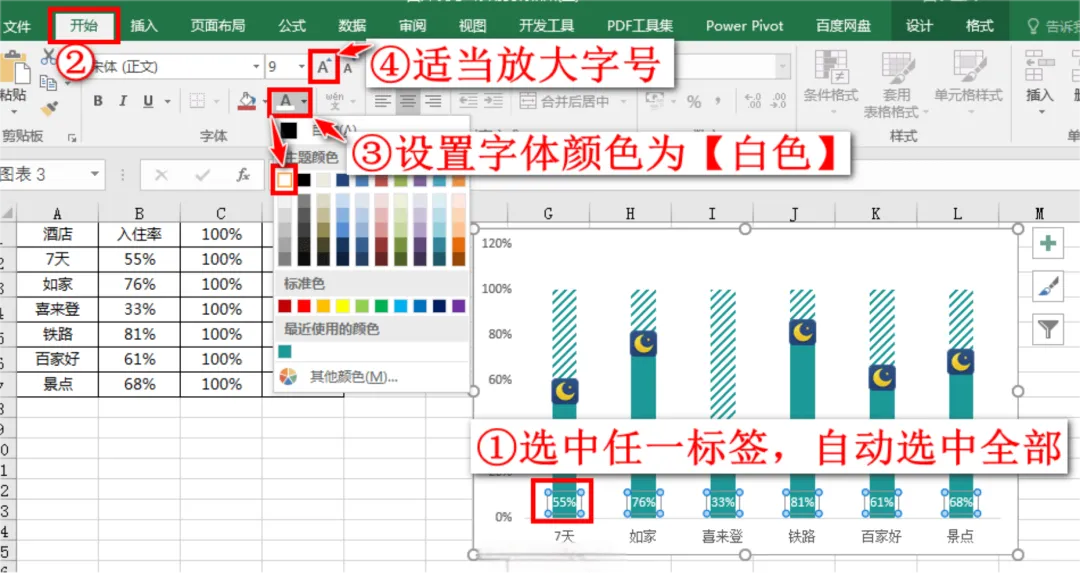 好了~这样一个美观又清晰的酒店入住率“音符图”图表就做好了!看一下我们的劳动成果吧: