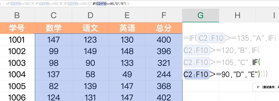 灵活调整:如果你的学科不是100分制(比如120分、150分),或者等级划分标准不同(比如 A 是85分及以上),直接修改公式里的分数即可。比如150分制,A≥135、B≥120、C≥105、D≥90、E<90,公式改成:
