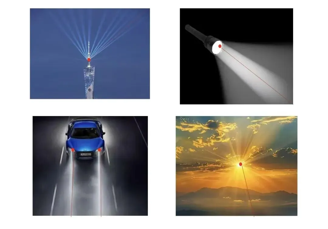 同学们,首先我们先看几幅图片,你在图片上发现了什么?(看到了光线)