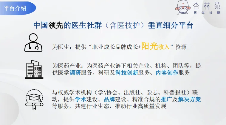 👇●加入社群,获得:成长+阳光收入免费:资料领取学分、业绩成果材料的标准格式、医学教材2025最新(近1000本)...补贴:《大众健康报》、核心《健康指南》..版面费加入《中国医院管理》杂志理事会兼职:爆料投稿、调研、《当代健康报》通讯员...●服务项目医学调研PPT科普比赛科普动漫画视频 生物绘图医生IP打造、科研科技创新一对一合规辅导社群广告合作、内容审核与创作、内容营销学协会、刊物、出版社、科普报社广告征集所有服务(学术 品牌 推广 解决方案...)