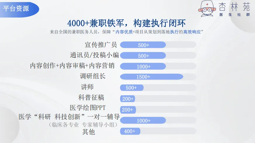 ●加入社群,获得:成长+阳光收入免费:资料领取学分、业绩成果材料的标准格式、医学教材2025最新(近1000本)...补贴:《大众健康报》、核心《健康指南》..版面费加入《中国医院管理》杂志理事会兼职:爆料投稿、调研、《当代健康报》通讯员...●服务项目医学调研PPT科普比赛科普动漫画视频 生物绘图医生IP打造、科研科技创新一对一合规辅导社群广告合作、内容审核与创作、内容营销学协会、刊物、出版社、科普报社广告征集所有服务(学术 品牌 推广 解决方案...)