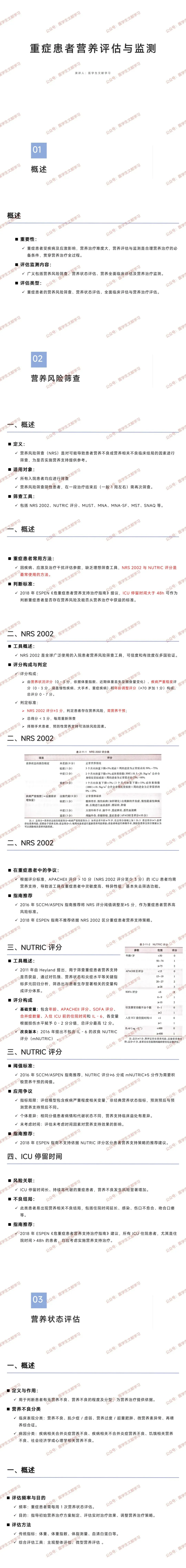 重要性:重症患者受疾病应激、治疗干扰,营养治疗难度高,评估与监测是合理治疗的前提,直接影响预后(如感染风险、住院时间)。