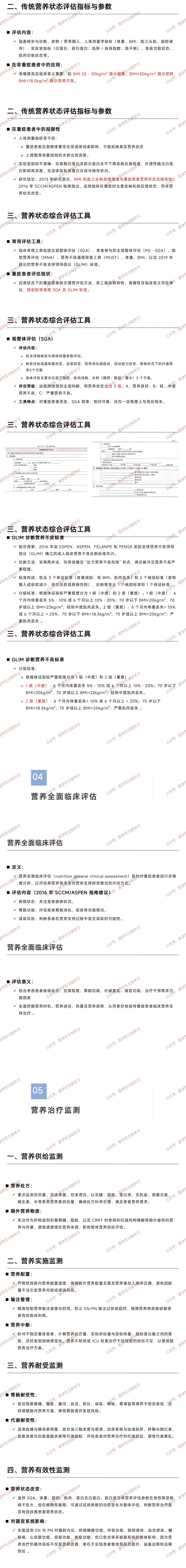 评估意义:综合应激程度、器官功能、治疗干预等,确定营养时机(如休克纠正后启动)、途径(肠内 / 肠外)、热量 / 底物配比,避免盲目治疗。