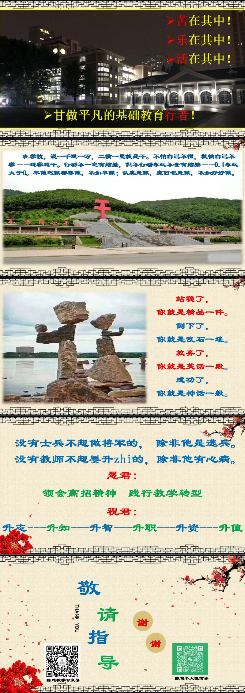 本课件适合各级教育局、教育教学研究院所室、教师进修学校、教师发展中心、中小学校等教育教学各级领导对学校教师特别是高中教师和其他教育教学研究人员作讲座所用。若需原汁原味的具有动画音响功能的原版电子版PPT课件,请阅读到课件文末说明。线上线下讲座预定请联系陈述校长19946913958(微信同号)。