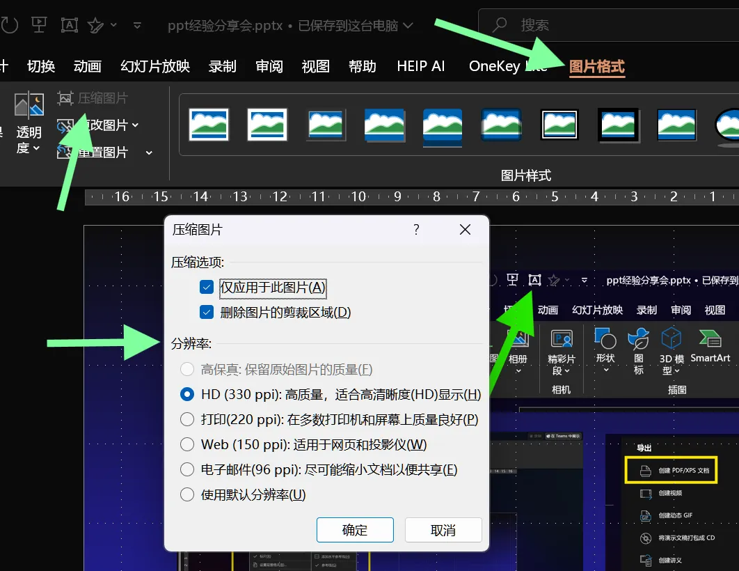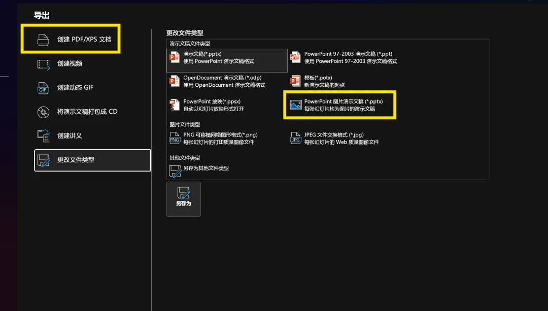 若ppt使用了大量难以在传播中切换到其他设备显示的内容,可以在导出时选择pdf导出或者纯图格式的ppt导出,亦或者直接在原ppt上进行截屏覆盖。