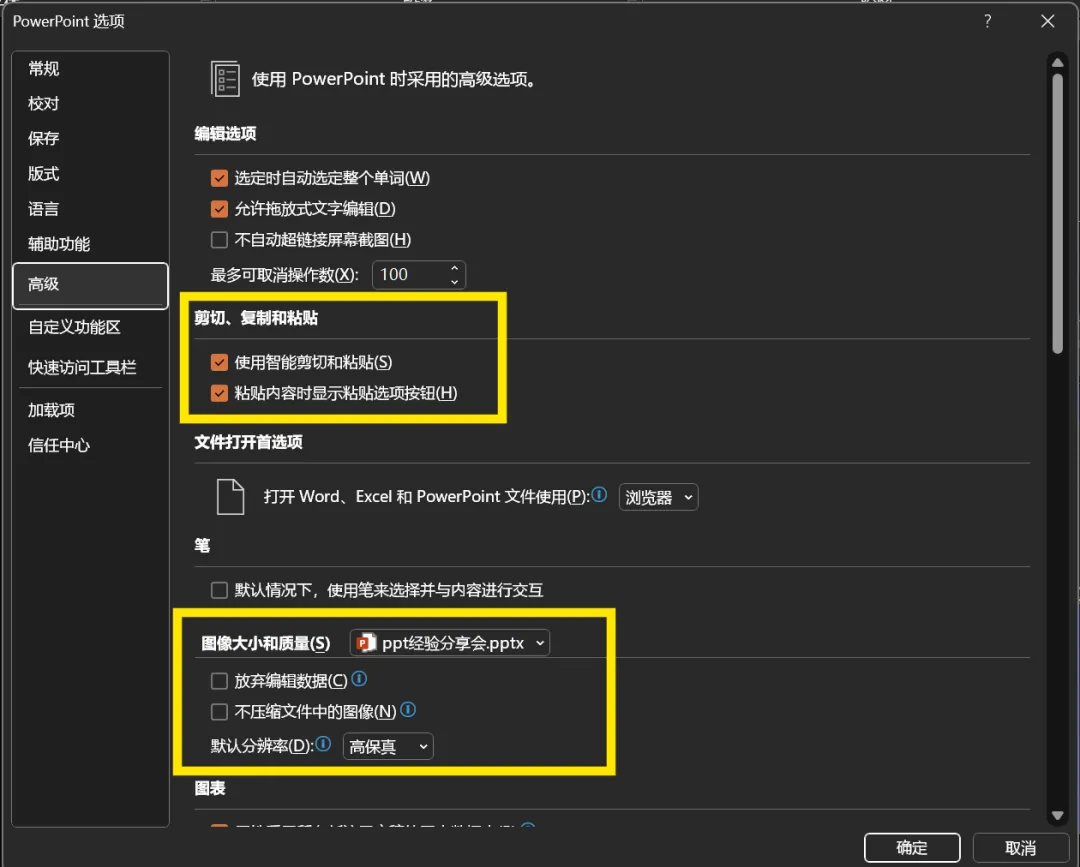 在复制粘贴过程中,常遇到字体或者颜色被自动改变的情况,这是为了适应当前主题以及尺寸,介意可以关掉智能粘贴,当然开启后可以右键中的“保留源格式”来还原格式。另此处还有图像的大小,可以根据文件大小要求,性能速度,以及图片质量综合考量
