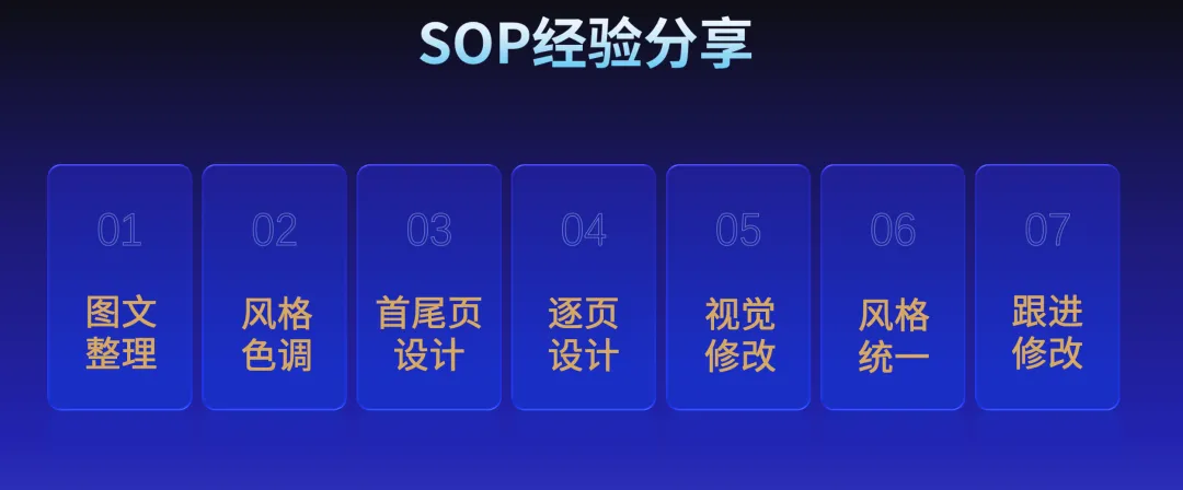 逐页设计:逐页设计的过程中,需注意很多要点,其中最重要的就是版式选取,背景可以设置为全文统一,简洁且富有层次(例如渐变)不杂乱。根据每页的大段文稿进行大刀阔斧地拆分总结,重点标注,套用合适的逻辑版式和图文排版