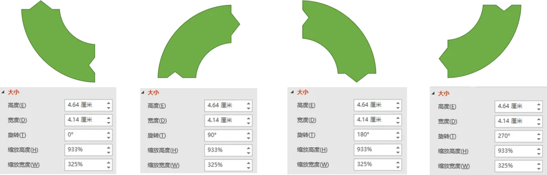 2. 分别旋转 0°、90°、180°、270°,形成环绕布局