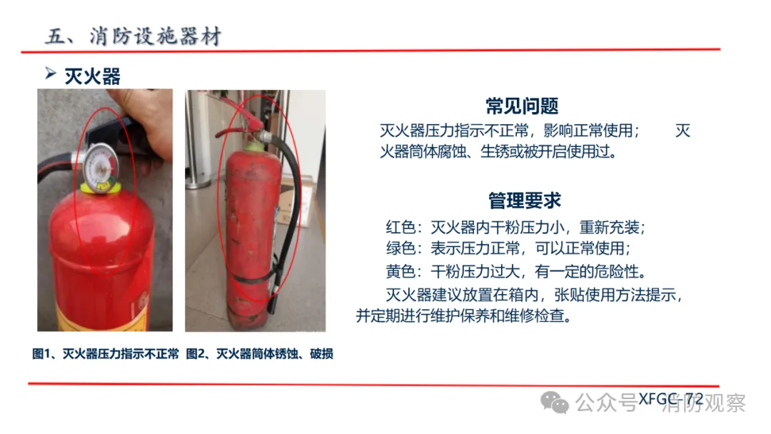 消防观察认为消防设施的日常维护同样不容忽视。例如,灭火器是常见的消防器材,但许多场所的灭火器存在压力不足、筒体腐蚀或被开启使用过等问题。灭火器的压力指示应处于正常范围,绿色表示压力正常,红色表示压力不足需要重新充装,黄色则表示压力过大存在一定危险。此外,消防栓、火灾报警器、喷淋系统等设施也应定期检查和维护,确保其在火灾发生时能够正常工作。