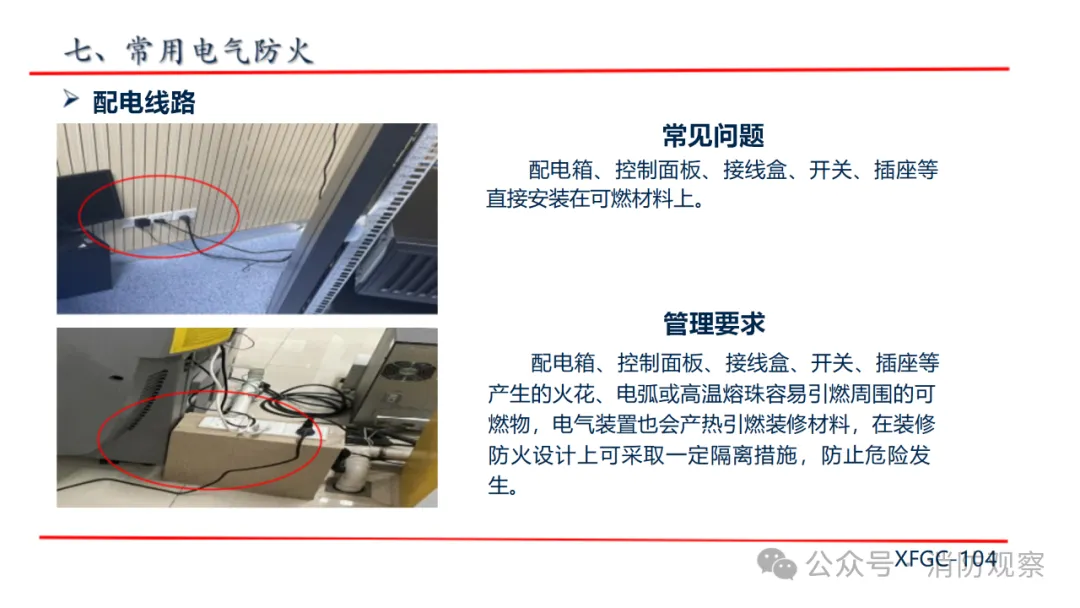 此外,电气线路的安全使用也是防范火灾的重要方面。许多场所存在私拉乱接电线、使用不合格插线板、电线老化等问题,这些都极易引发火灾。电气线路应定期检查,确保线路完好无损,避免过载使用。同时,应避免在可燃物附近使用电热器具,并确保其周围没有堆放杂物。通过这些细致的管理和维护措施,可以有效降低火灾风险,保障人员和财产的安全。