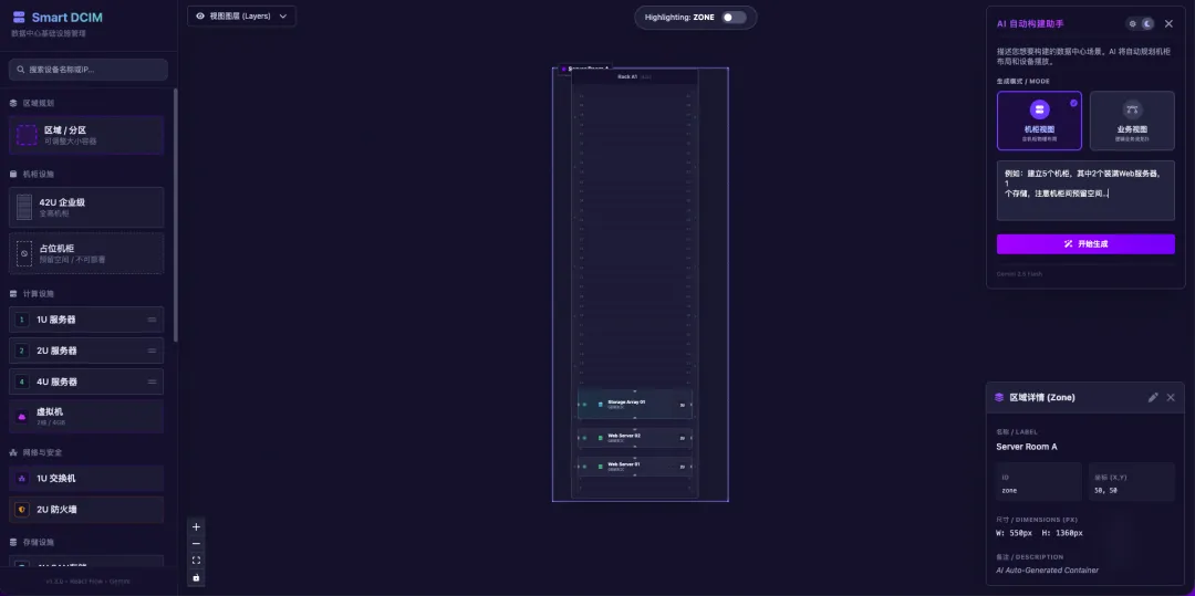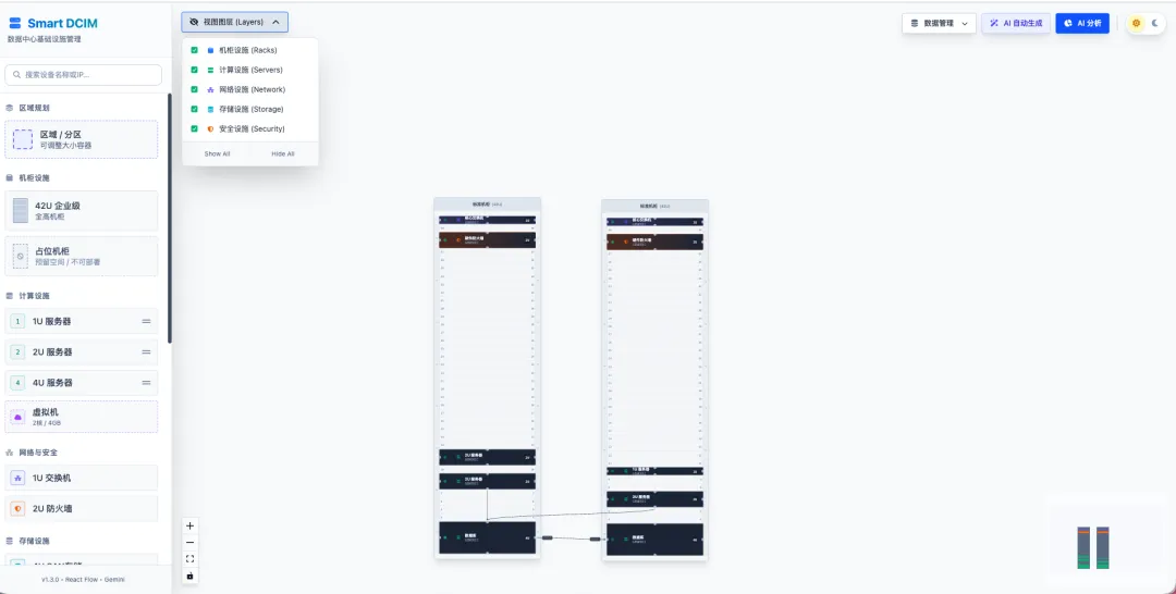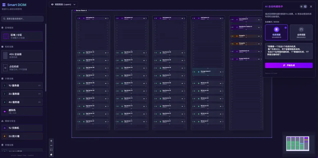 1️⃣ 机柜模式 - 生成物理机柜布局