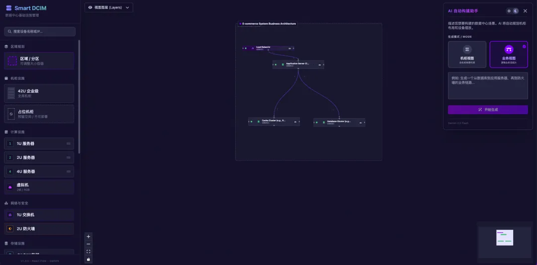 Smart Flow 是一款基于 React 和 ReactFlow 的数据中心基础设施管理(DCIM)可视化系统,让复杂的机房管理变得像玩游戏一样简单!