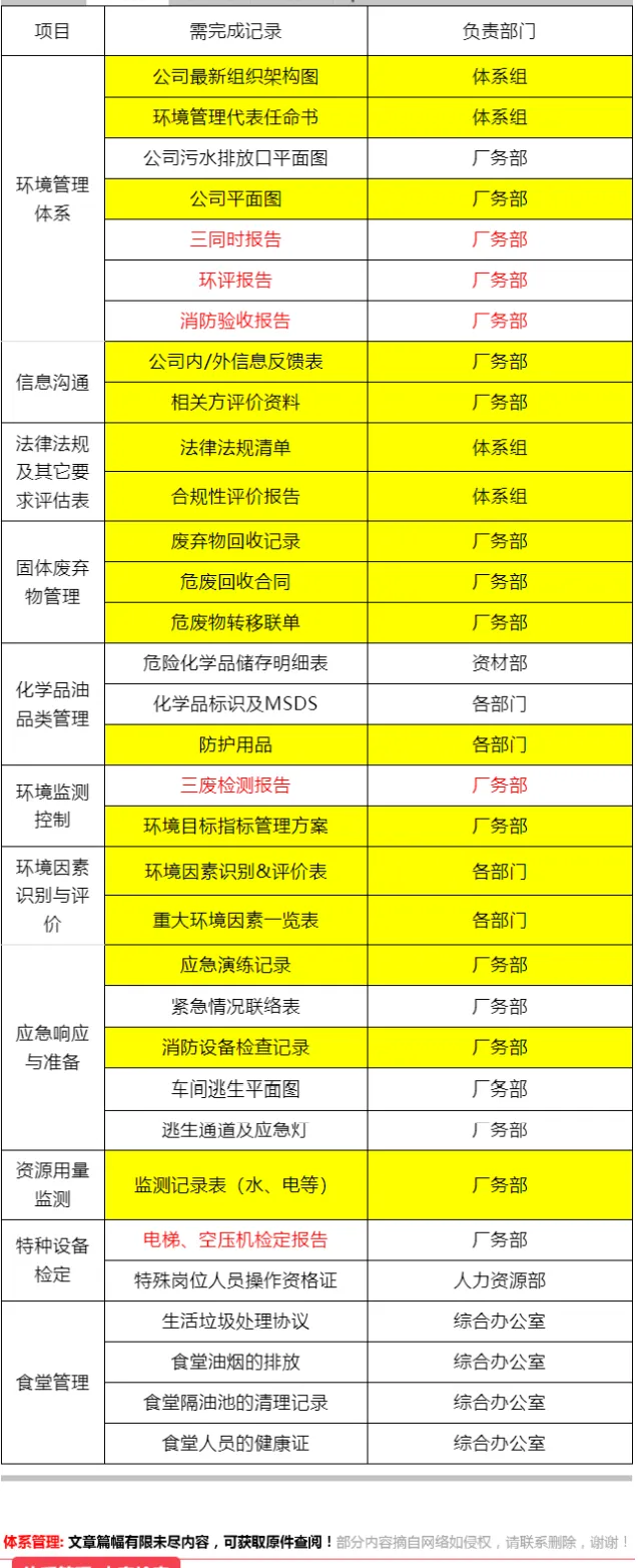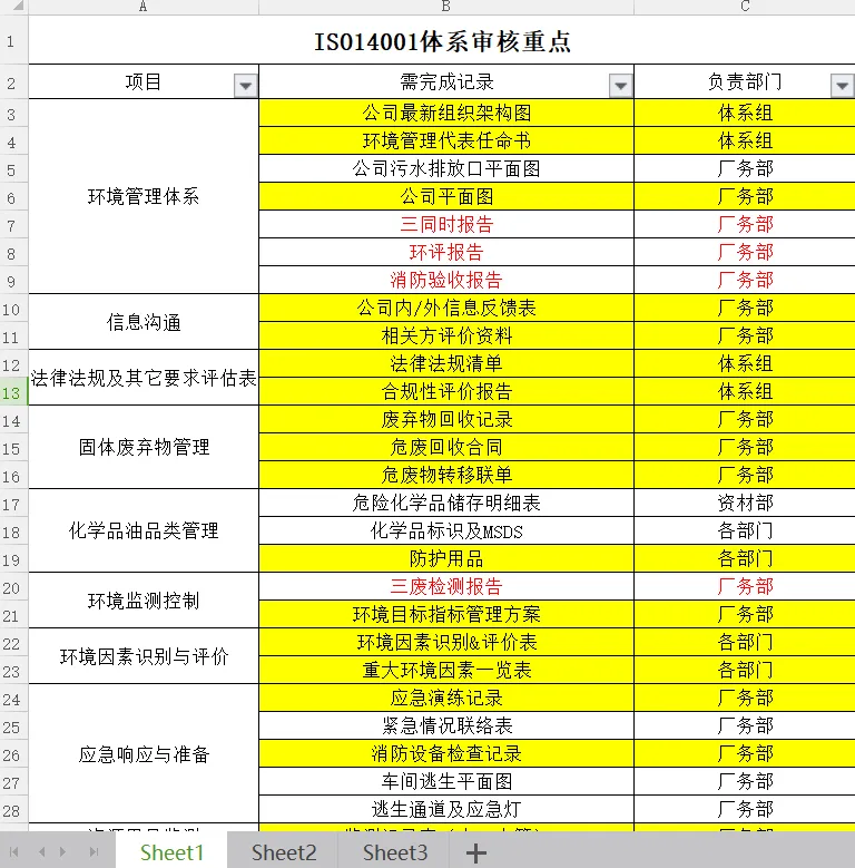 >ISO14001外审重点--Excel编辑档可获取!